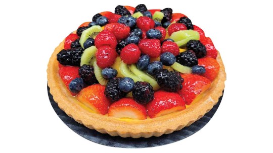 9" shortbread crust filled with custard and topped with ripe fruit. Serves 8.
